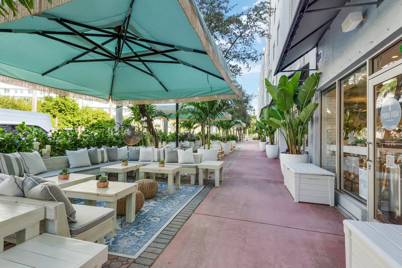 Pura Vida’s outdoor patio on West Avenue in South Beach.