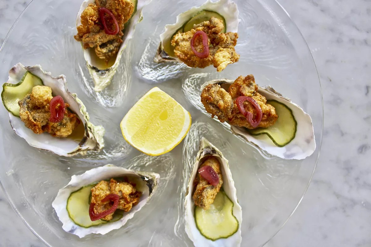Ella’s Oyster Bar. 1615 SW Eighth St., Miami; 786-332-4436; ellasoysterbar.com. At first glance, Ella’s Oyster Bar may be designed in a Cape Cod-hipster motif, but the decor only hints at influences that also include the Caribbean and Latin America. For just-shucked oysters, the selection is more modest than those at some other places, but Ella’s boasts a delightful mignonette with red wine vinegar, which gives the tincture a sweeter, gentler bite that lends itself well to saltier oysters. The Little Havana clambake, large enough for two, is stocked with supple lobster, clams, head-on pink shrimp, and mussels. The brew begins with a light tomato water combined with sake, lemon juice, chives, and butter. Somehow it all emulsifies with the sweet oceanic liquor from the shellfish and the juice from chorizo to yield an assertively rich sauce that’s also light as a breath of beach air.