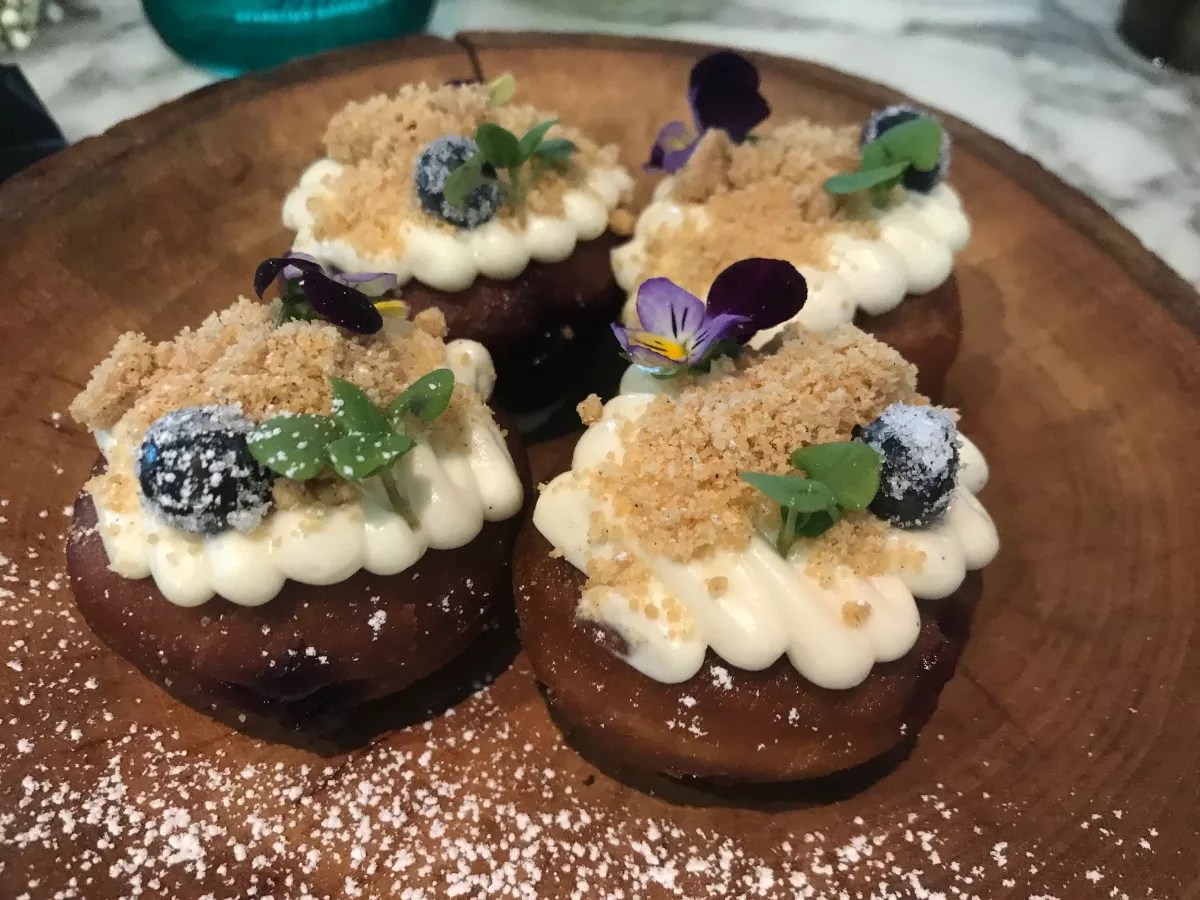 Sweet items have their own menu, so opt for Dallas Wynne’s chai waffles with whipped espresso foam and spiced syrup ($12) or organic strawberry doughnuts topped with sour blueberries ($9).