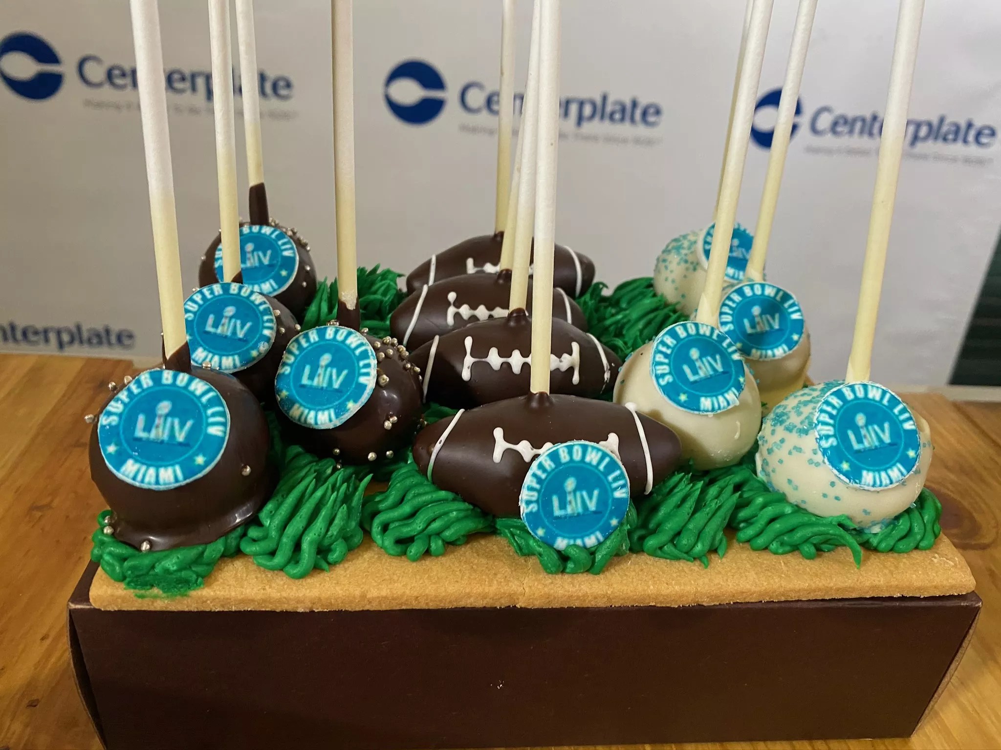 Super Bowl cake pops.