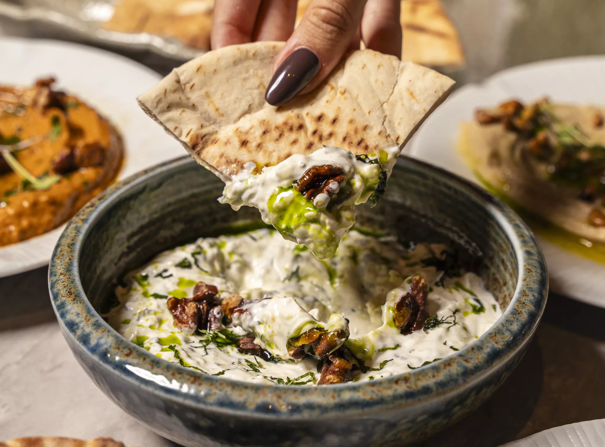 Executive chef Alp Karataslioglu, from the original New York location, is assisting with launching the Midtown location before handing off the kitchen to executive chef Tolga Mutlu. Mutlu draws inspiration from the Aegean Coast and Greek markets and has worked in high-end kitchens.