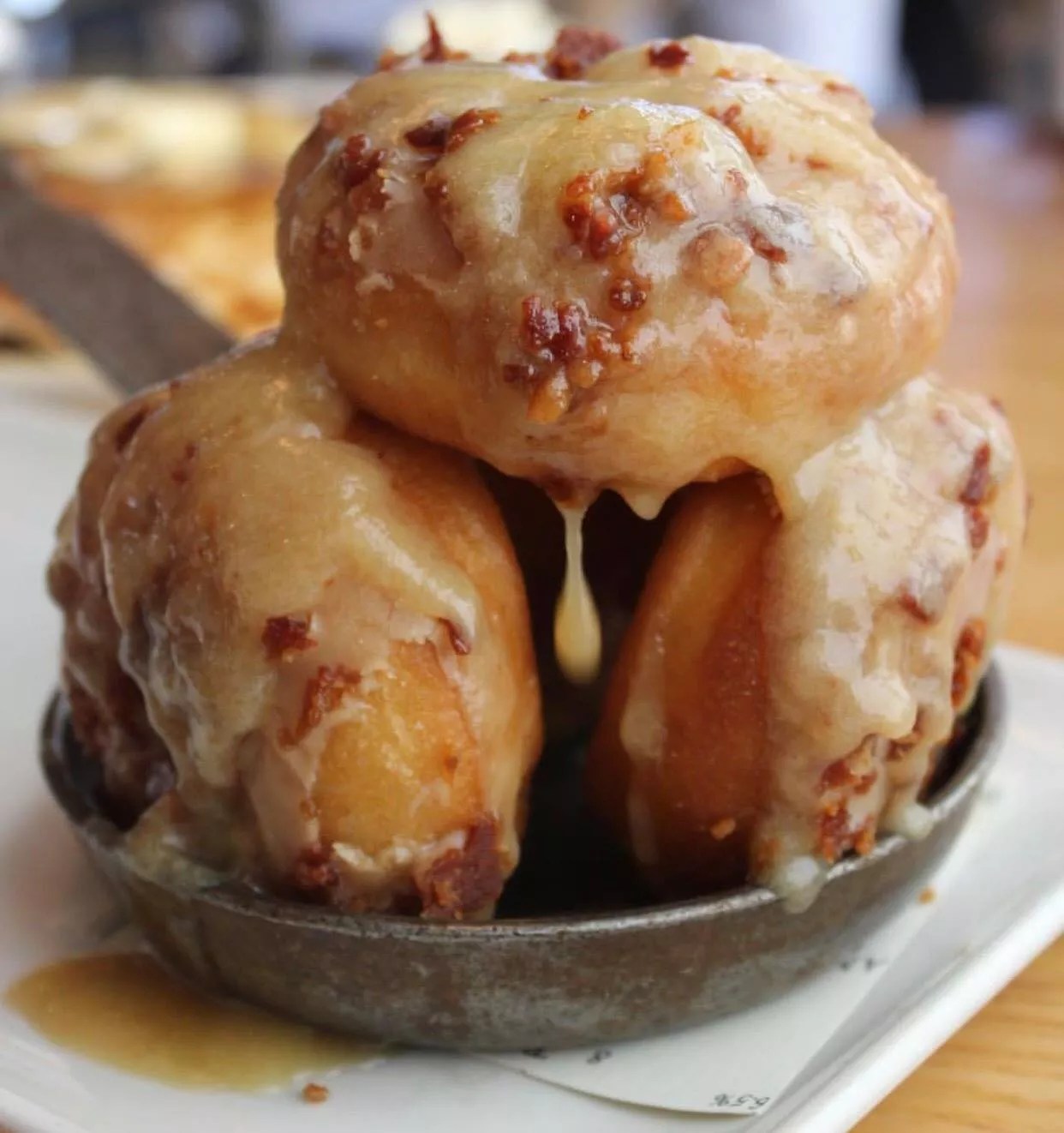 Dunk a maple-glazed bacon doughnut into a pool of butterscotch