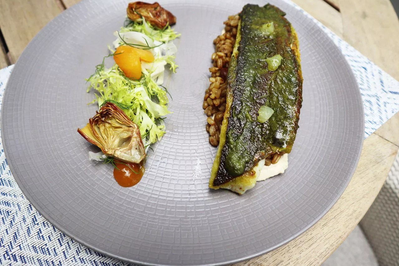 Seared Mediterranean branzino.