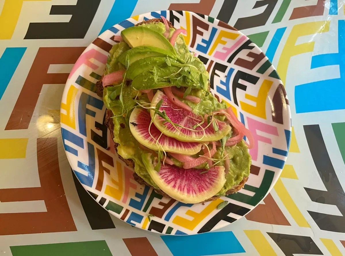 Menu items include Fendi branded French toast ($11), grilled cheese ($12) and avocado toast ($11).