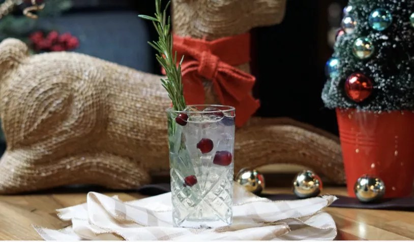 This year the waterfront destination’s seasonal offerings include the “Jolly Nightcap,” made from Baileys Irish Cream, vodka, and raspberry and chocolate sauces ($18); and the cranberry old fashioned, stirred with Crown Royal, fresh cranberry juice, lime, and a sprig of rosemary ($18).