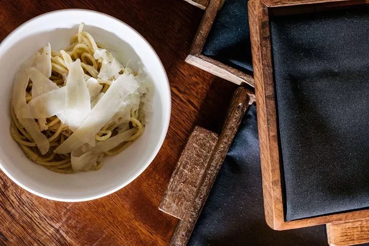 The cocktail bar, located in the X Miami building, is known for drinks by bartender Will Thompson, but chef/owner Carey Hynes is the upping the bar-food game. The most genius part of the menu at Jaguar Sun are the four pasta dishes, each satisfying and soulful. The bucatini ($14), tossed with Parmesan, Pecorino-Romano, and black pepper, is perfection in simplicity.