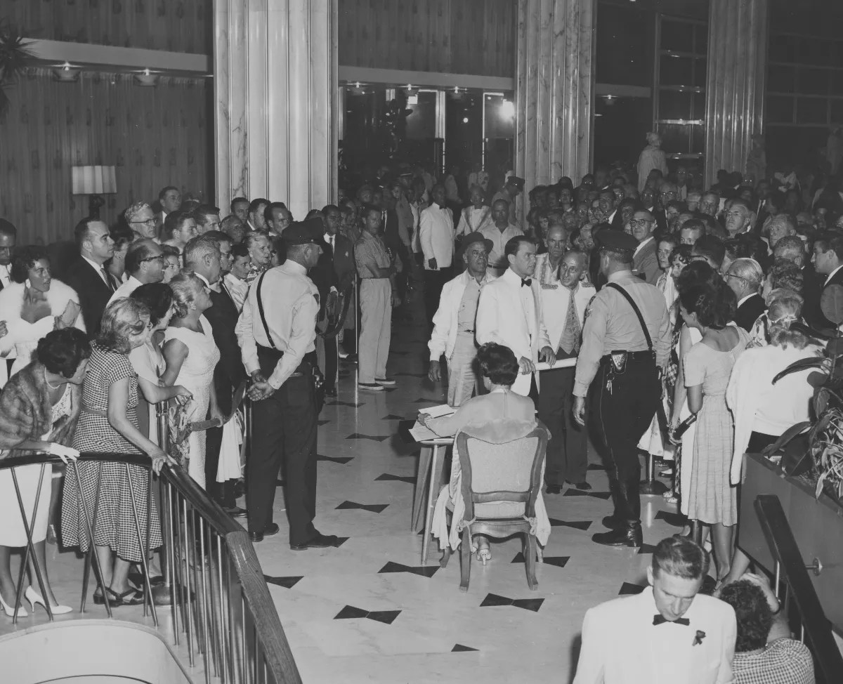 The crooner often performed to packed houses at the Fontainebleau’s nightclub, La Ronde. He filmed three movies on the property: A Hole in the Head, Tony Rome, and Lady in Cement. Sinatra also performed a duet with Elvis Presley at the hotel in 1960. According to the book Miami Beach Memories, Old Blue Eyes and his pals would be seen around town in $1,000 custom suits surrounded by bodyguards.