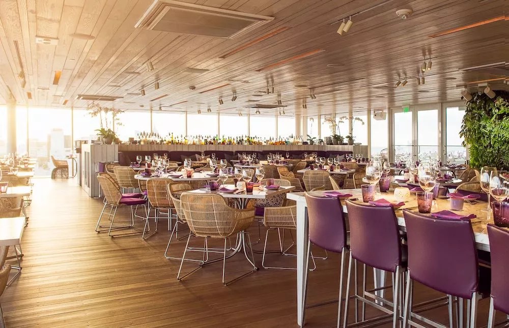 5. Juvia. The beauty of this purple-hued rooftop is rivaled only by its view overlooking the South Beach skyline. A lush terrace and glass-enclosed dining room with floor-to-ceiling windows provide plenty of seating options to enjoy the scene, which only gets more stunning as the sun goes down. 1111 Lincoln Rd., Miami Beach; 305-763-8272; juviamiami.com.