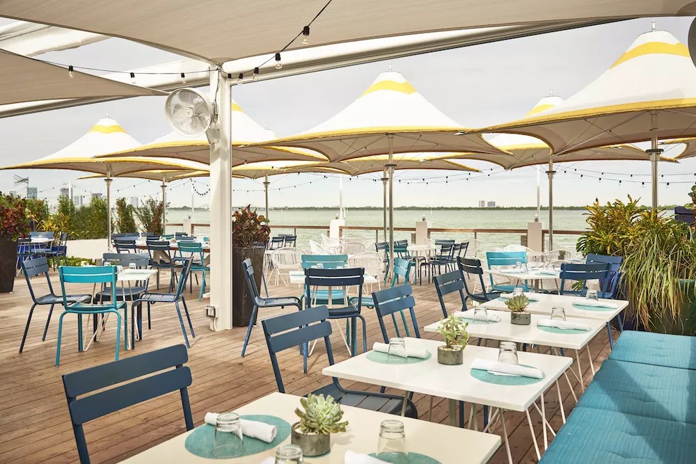 2. The Lido Bayside Grill. There’s not a bad seat in the house at this dockside eatery overlooking Biscayne Bay. Walk along the deck, unwind under the bright yellow umbrellas by the pool, and order some Mediterranean bites and health-minded cocktails at the bar. A weekday happy hour from 4 to 7 p.m. features $2 oysters, discounted bites, and $7 frosé. 40 Island Ave., Miami Beach; 305-673-1717; standardhotels.com/miami/features/bayside-grill.