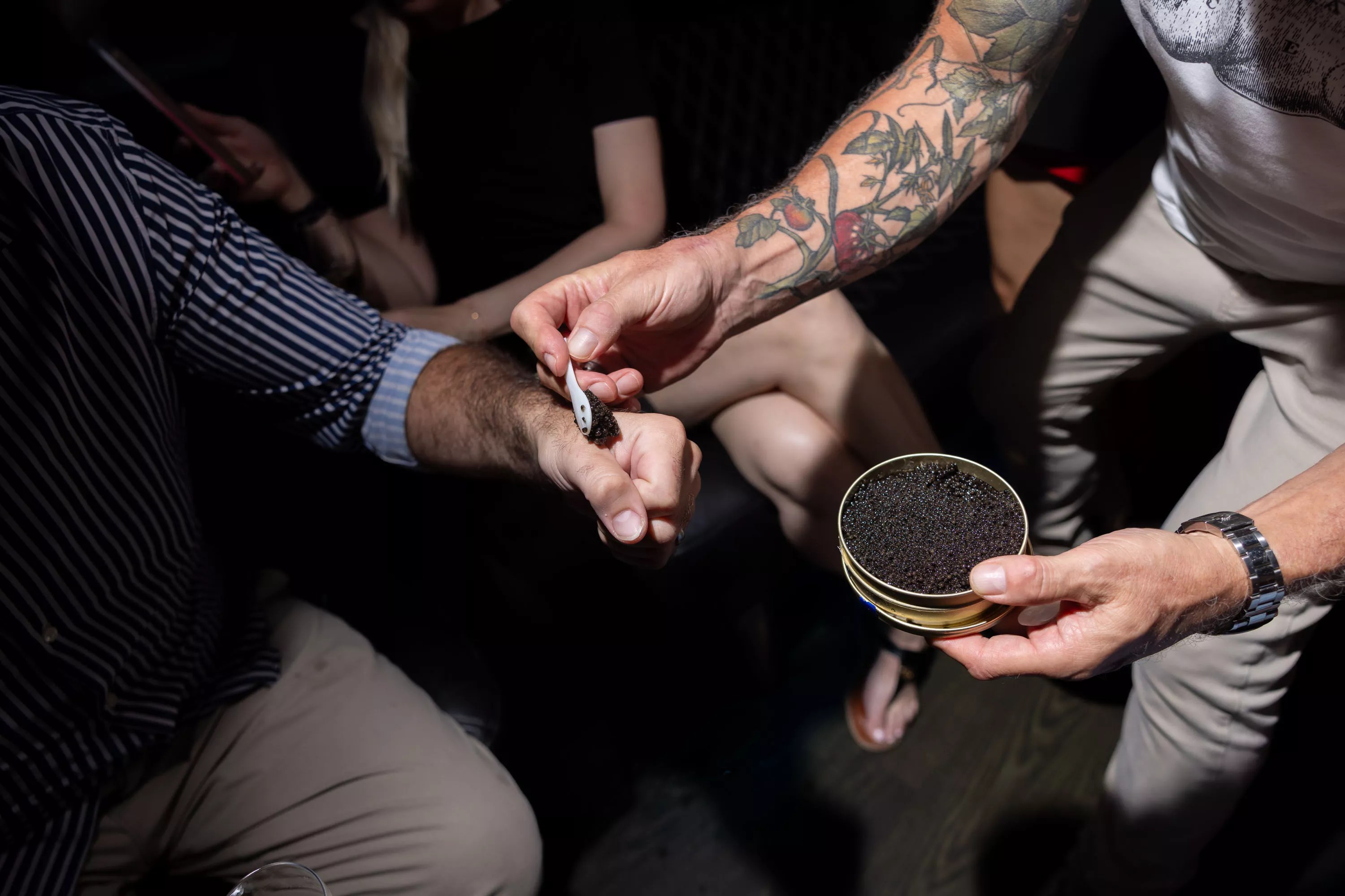 A party bus shuttled us over to Michael’s Genuine, where Schwartz himself handed out caviar bumps while the group enjoyed a champagne toast.