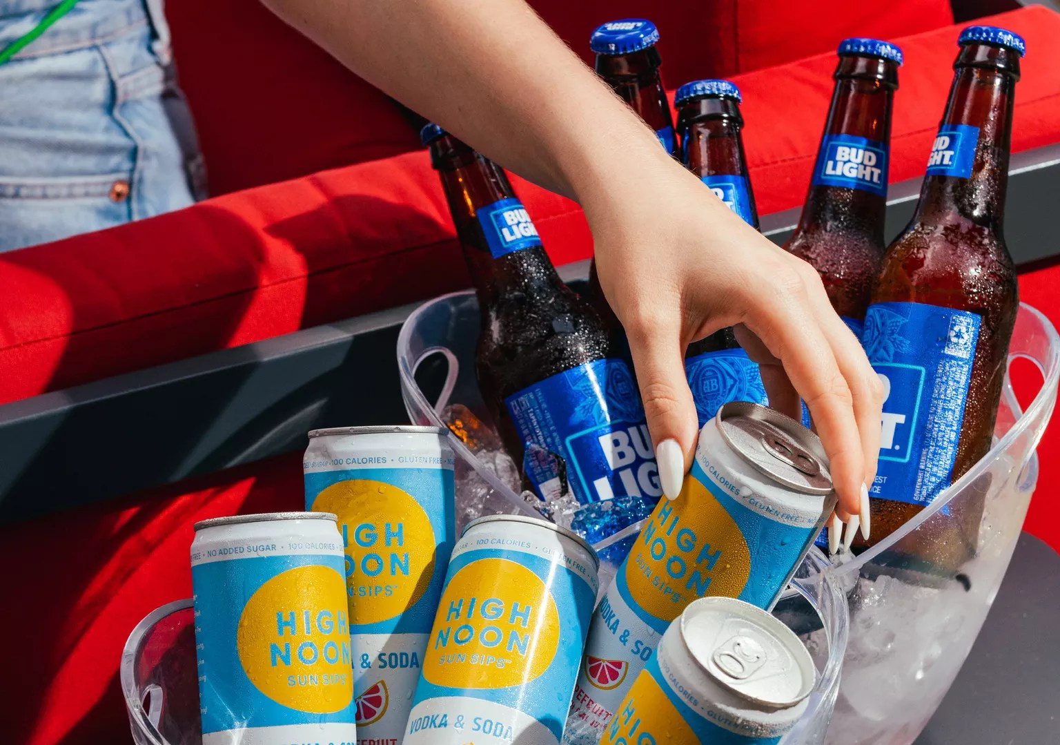 American Social is serving a bucket deal, cans of Nutrl, buckets of Budweiser, Bud Light, or Coors Light, and buckets of High Noon or Truly.