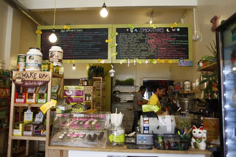 Though “local” is all the rage now, there’s still something to be said for food un-injected with high-fructose corn syrup, AKA “having undergone little or no processing and containing no chemical additives,” AKA, “natural.” There’s also a lot to be said for any natural-foods restaurant that features meat in addition to requisite hippie staples such as quinoa and tofu, and even more to be said if that place is also fast, clean, and well-located in both Aventura and Miami Beach. Juice & Java’s menu rivals that of The Cheesecake Factory for the number of options, including breakfast wraps made with organic eggs, lattes made from Lavazza beans, and open-face melts with Monterey jack or soy cheese on white or whole-wheat pitas. It’s one of the few places in Miami-Dade County where you can get a healthful and good-tasting meal fast.