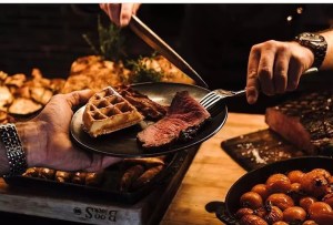Inside the Betsy Hotel, LT Steak & Seafood boasts a considerable wow factor before the first course even arrives. Appetizers comprise mostly cold dishes, including shrimp cocktail, tuna tartare, and raw bar selections such as clams, oysters, and stone crabs. Even the sole warm offering – a moist, lusciously herbed crab cake – comes pooled in chilled dill-flecked Meyer lemon dressing. Non-steak-eaters might try lemon-rosemary chicken, seven-spice duck breast with foie gras and mango mustard, or harissa-crusted swordfish steak succulently grilled and highlighted with olive oil and lemon. For dessert, diners can choose three or five of eight all-American artisan cheeses or a round of blueberry-lemon meringue pie with a sweetly brittle p