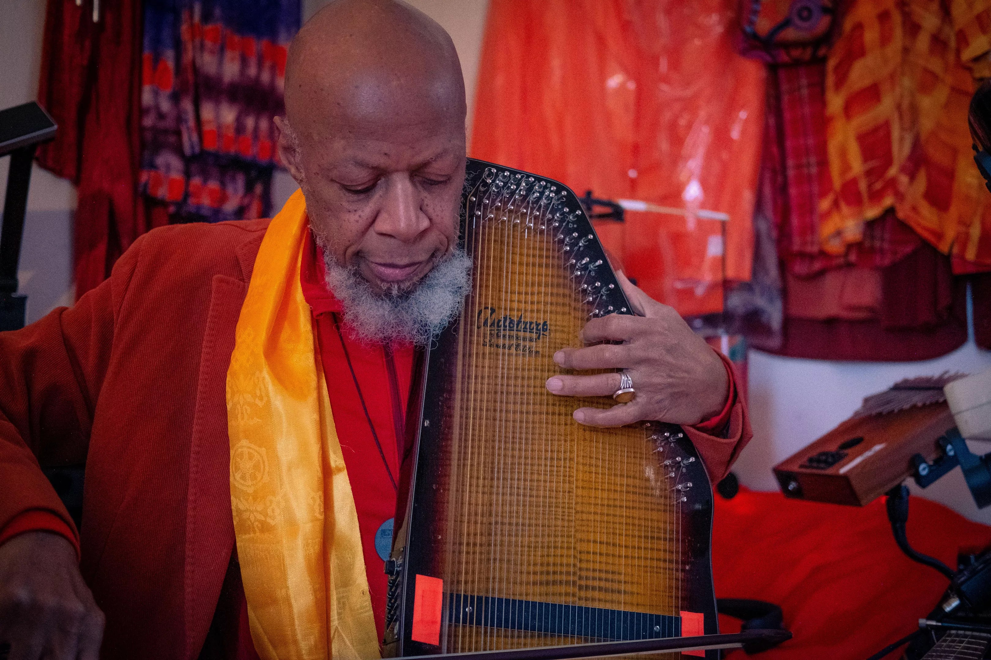 First came the mystical voice Laraaji claims to have heard in 1974, urging him to trade his guitar for a second-hand autoharp in lieu of much-needed cash at a Queens pawn shop. A classically trained jazz keyboardist until this point, the exchange would prove pivotal for Laraaji’s creative development after he inventively adapted the stringed instrument into an open-tuned, audio-processed electric zither.