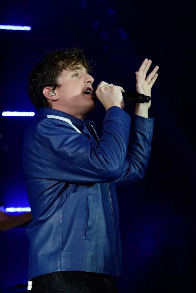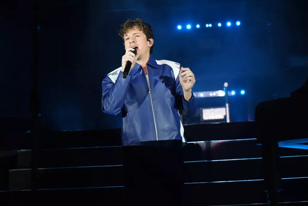 Charlie Puth performing at the FPL Solar Amphitheater in downtown Miami