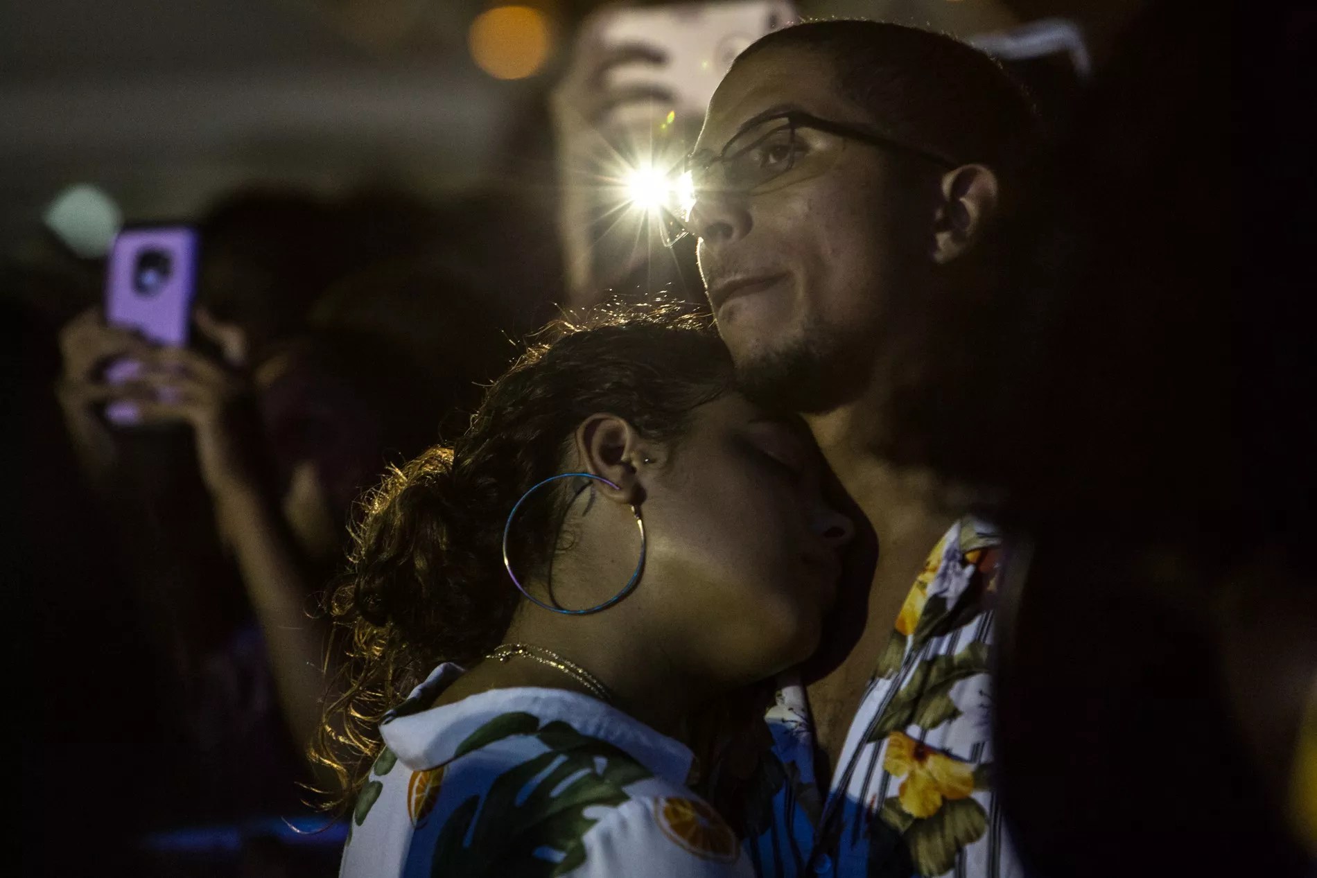Xavier Omär finally took the stage closer to 9 p.m. “Hey everyone, I don’t know what’s really going on, but I just want to shout out three people who I personally came to see that hasn’t gone on yet. Tobi Lou, Arin Ray, and R.Lum.R.,” The crowd cheered back. “I don’t know what’s going to happen, but just know I wanted to see them too.” He began to play a few crowd favorites from Pink Lightning, his latest EP before cutting his set short to allow Tobi Lou to have a few songs. “Hey, Miami,” said Tobi Lou over the mic dressed in a white tee and shiny gold shorts. “Fucking finally,” said a girl holding her heels in her hand. After only performing two songs, he promised one more single, “Troop” before he left the stage. Still, no Arin Ray or R.Lum.R.