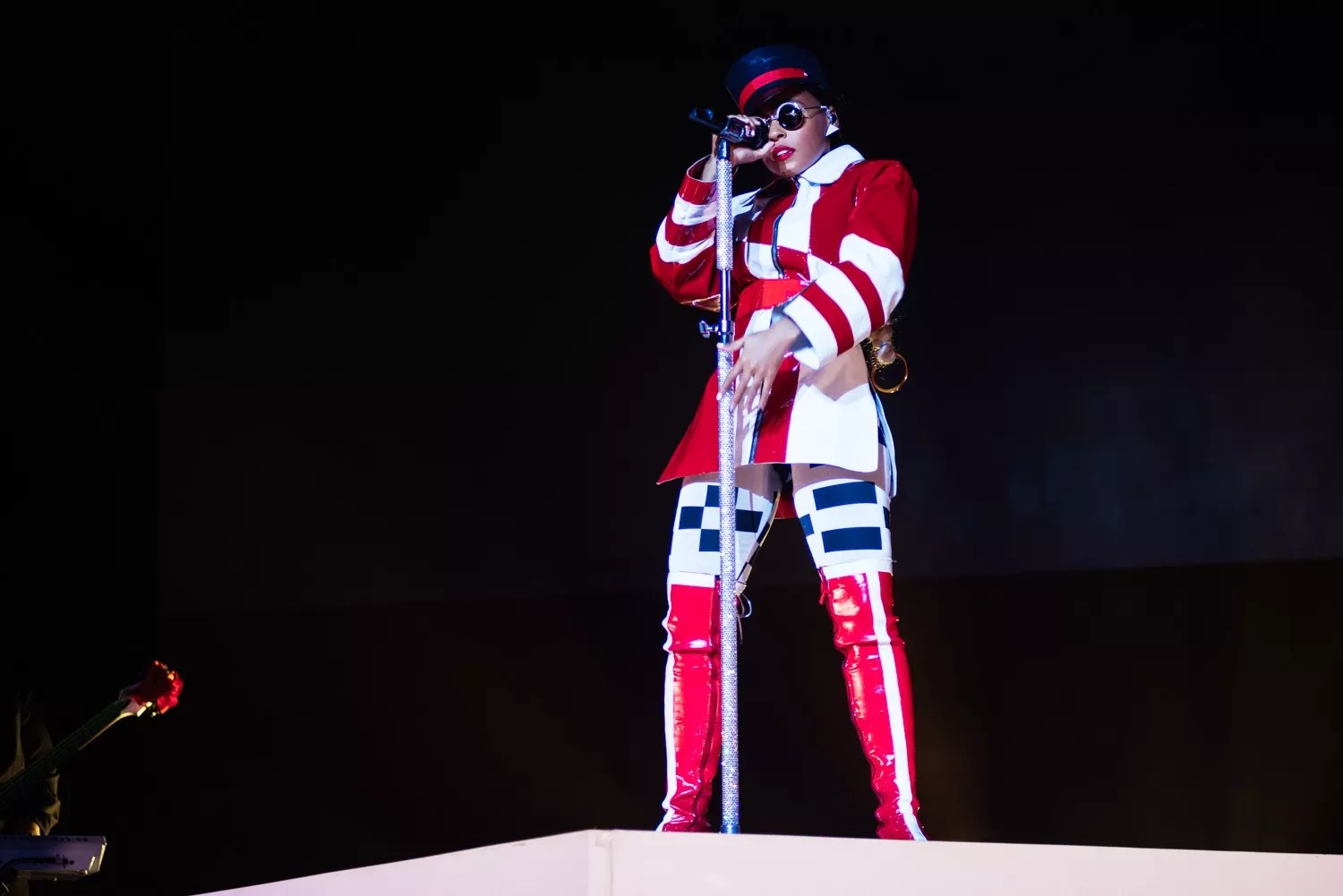 What happens when the future collides with the present? In Monáe’s tableau, the world ends with a bang of lasers and smoke during a rendition of “Tightrope,” the singer collapsing with her glittering mike stand at the top of the stage. The applause was riotous, and it could not have been any other way.