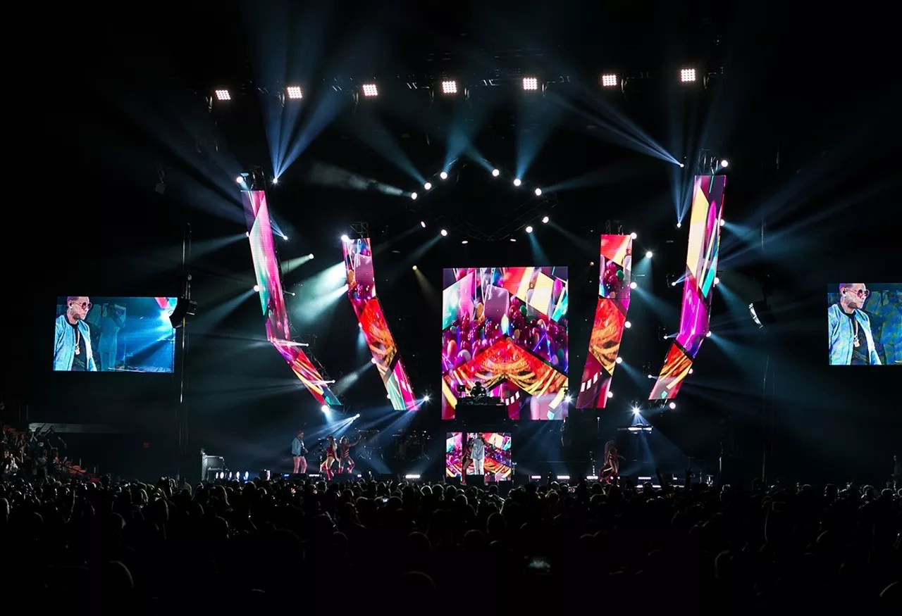 It was a similar scene Saturday night as thousands of fans gathered at the American Airlines Arena for the Nicky Jam and Plan B concert. People were dancing in the aisles from the moment they entered the arena, double cups in hand, as commercials for upcoming concerts by Maluma, Bad Bunny, and Silvestre Dangond played on a loop before the performances began.
