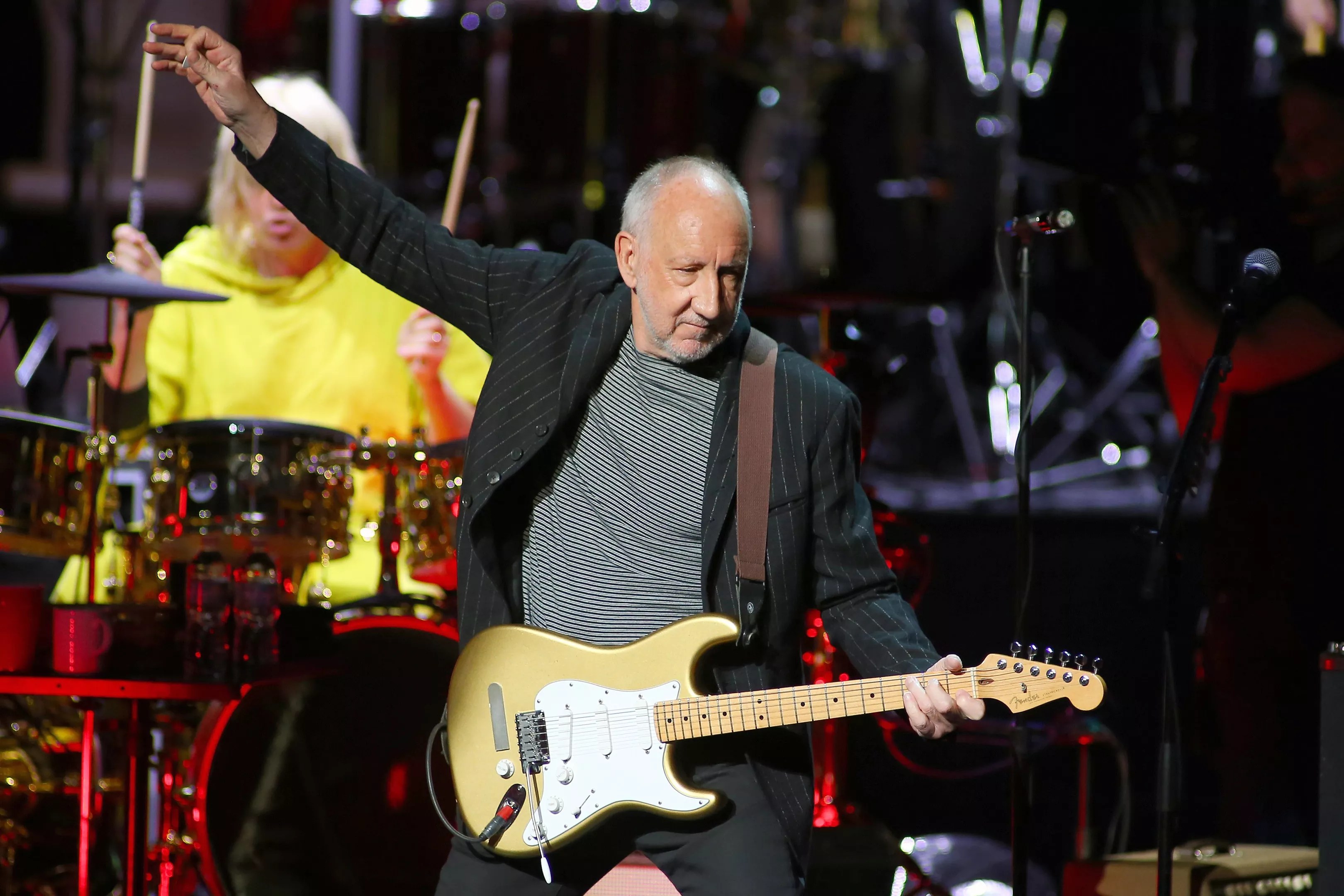 Midway through the show, to demonstrate they weren’t hiding diminished musical skills with a fuller stage, the two original band members took the stage alone for a performance of “Won’t Get Fooled Again,” from the Who’s 1971 album Who’s Next. The stripped-back rendition proved Daltrey could still hit a wide range of notes and Townshend still had a sufficiently flexible shoulder to complete his trademark windmill guitar strum.