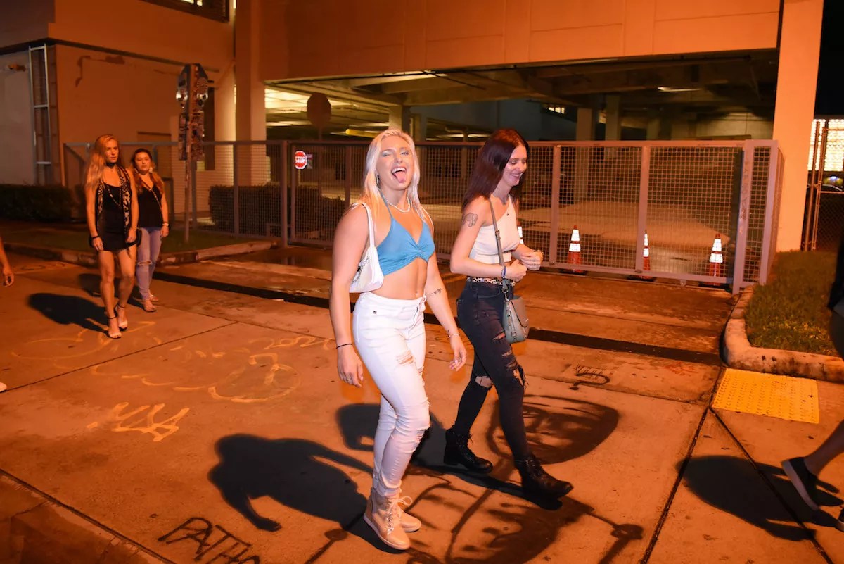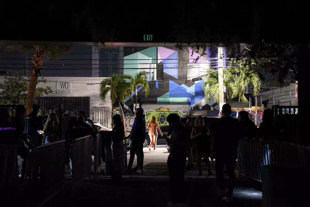 The party starts late in Miami, but a little past 10 p.m. on a Saturday night, Wywnood’s already bustling. Cars are bumper to bumper on NW Second Avenue, windows rolled down, blasting the communal soundtrack of reggaeton and rap. Thumping party buses clog traffic as passengers drape out of the windows with bottles of Champagne. Women in bodycon dresses and heels gleefully skip down 24th Street, only to be brought up short by entry lines that snake around corners. Men in button-down tops and slacks vape while chilling in line, adhering to bouncers’ “no shorts for men” mandate.
