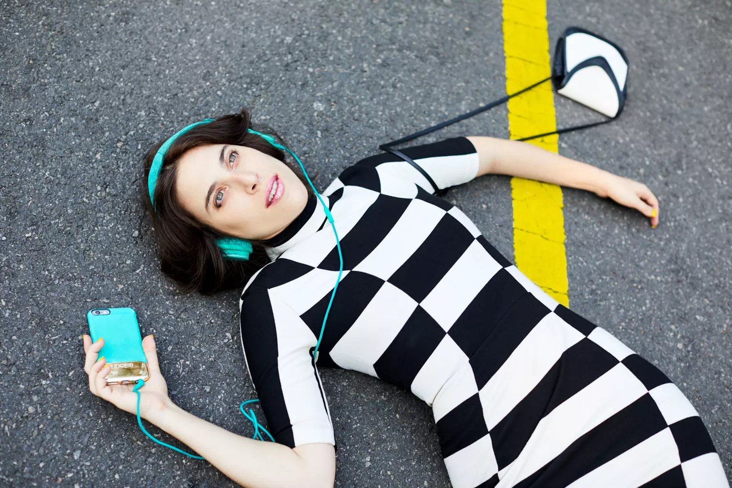 Pelle chose an April release for the video to coincide with Distracted Driving Awareness Month, and though her music video doubles as a PSA, she says she refrained from using shock value to capture viewers’ attention. “In the video, I wanted to focus more on the relationship that’s lost rather than a scolding message — helping people put into perspective [the value of] phones versus human life, their own importance versus the importance of someone else they might not even know or be thinking about. I wanted to just show people walking by me. I’m lying on the floor and they’re on their phones, and they don’t even notice there’s somebody potentially dead on the road… I’m not showing anything violent. I’m not showing anything extreme. I’m just showing apathy, and I think that’s scarier.”