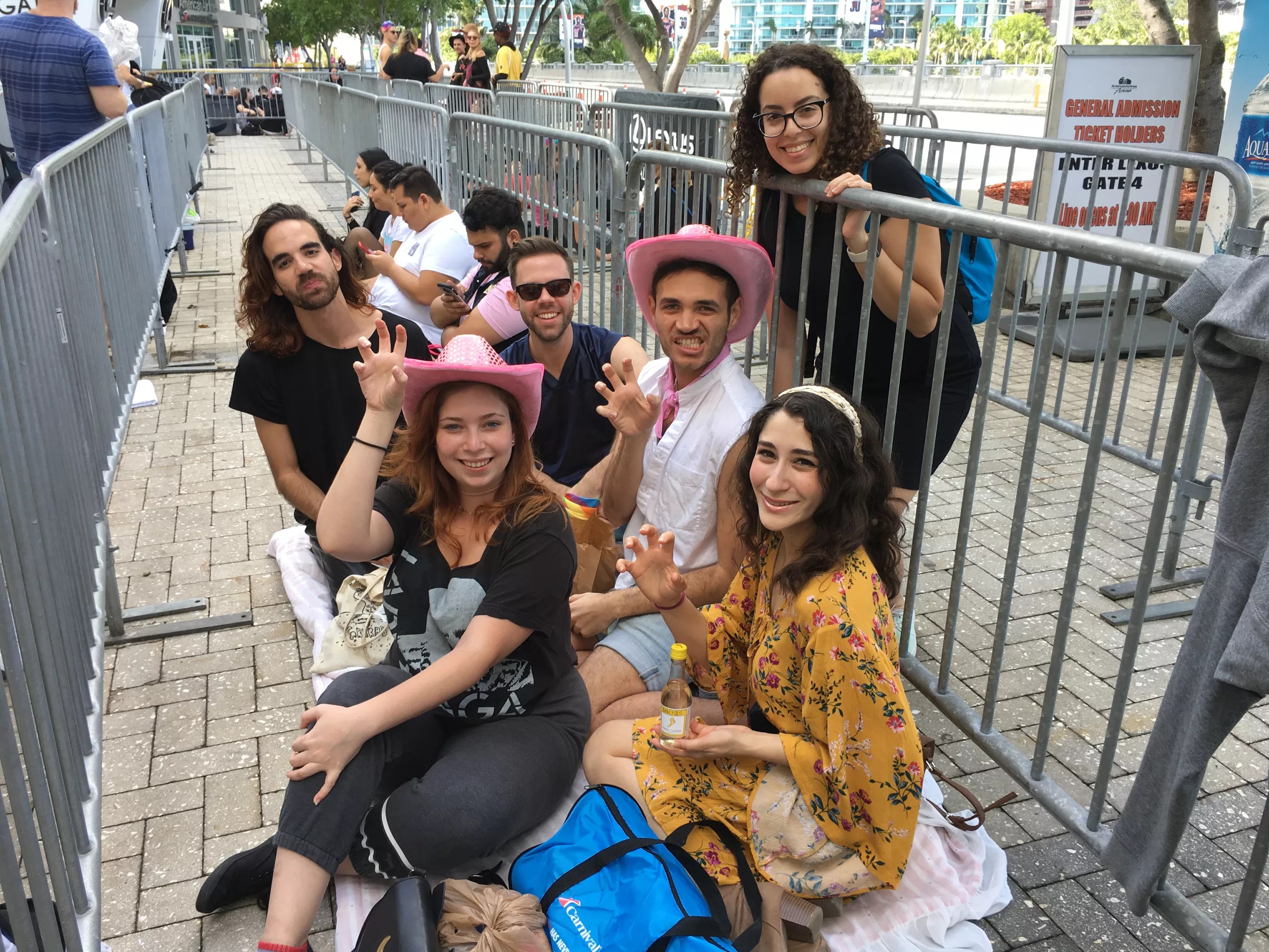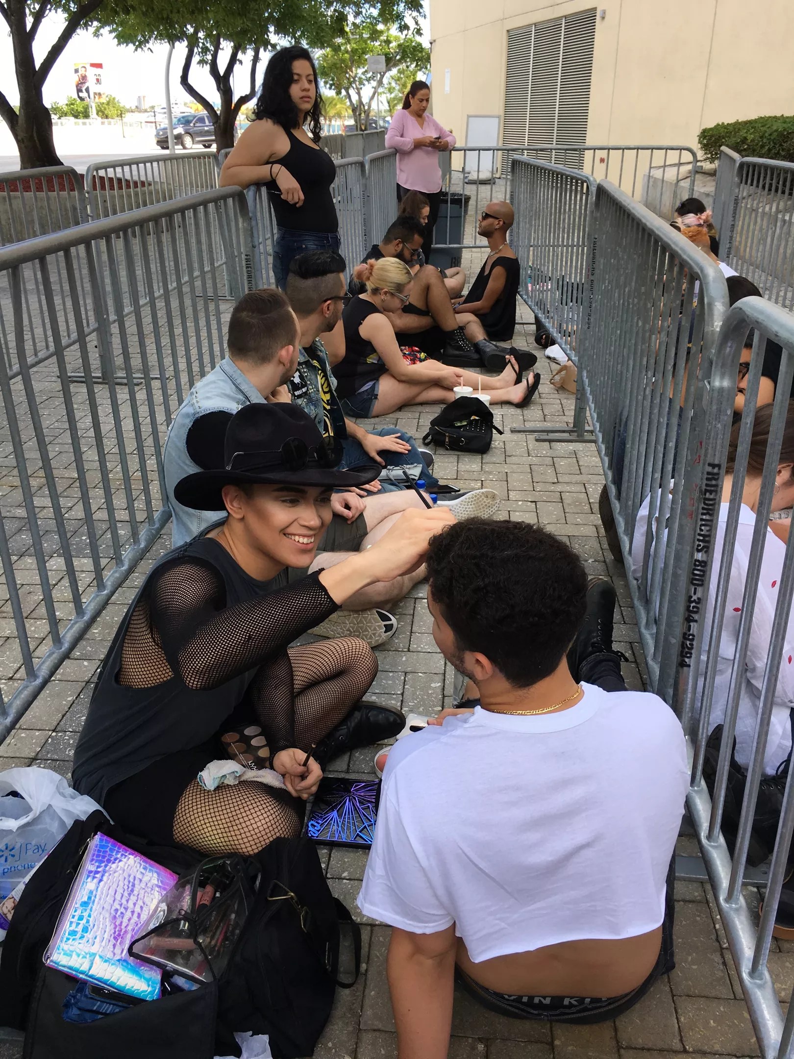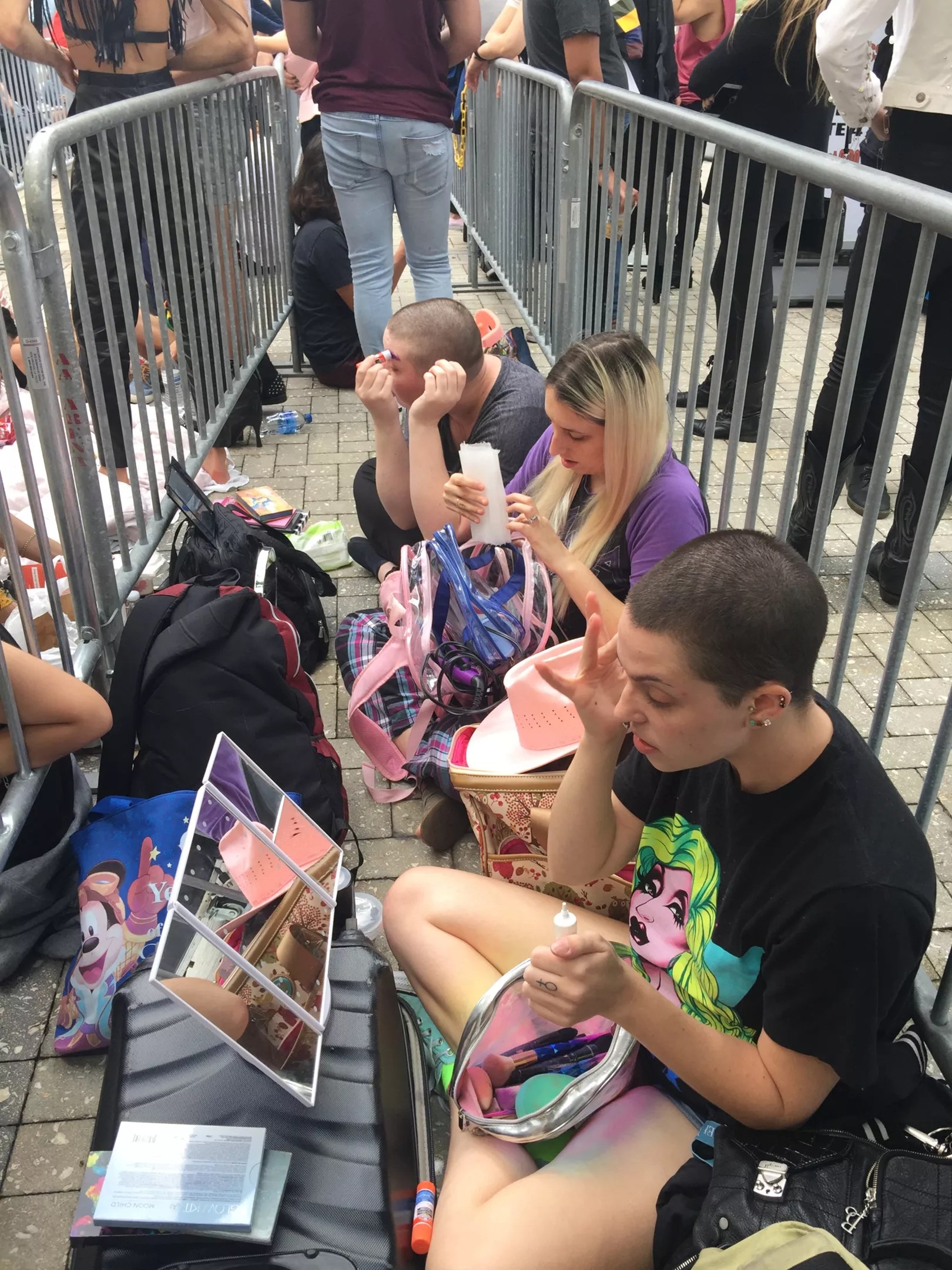 These fans brought portable vanity mirrors and began putting their looks together about six hours before Gaga hit the stage.
