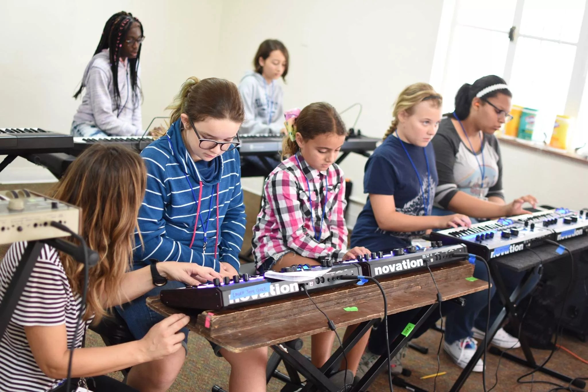 “A day at camp encompasses a lot of different things,” Taylor says. The days start and end with discussion topics, followed by instrument instruction and half an hour of movement activities such as yoga, dancing, or games. Throughout the week, campers are split up into age groups of 8 to 12 and 13 to 17. “We’re able to cater workshops to more age-appropriate content if needed.”