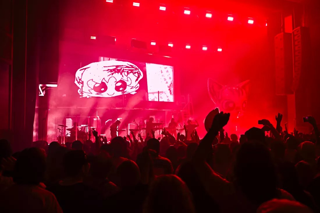 Robinson was backed by a full band with keyboards and other instruments on stage at his disposal. A second stage was set up to look like a billboard, which, at times, Porter would climb during the show. The billboard was an LED screen displaying visuals, lyrics, and a live feed from one of the in-venue cameras. There was also a giant inflatable anime-style dog on the right side of the stage that was seemingly there just to be cute – not that anyone was complaining.
