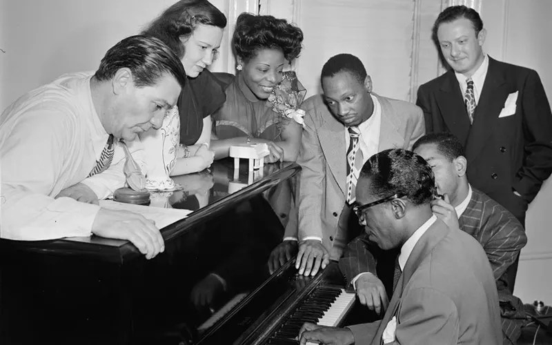 Jack Teagarden, Dixie Bailey, Mary Lou Williams, Tadd Dameron, Hank Jones, Dizzy Gillespie, and Milt Orent at Williams’ apartment in New York, circa August 1947