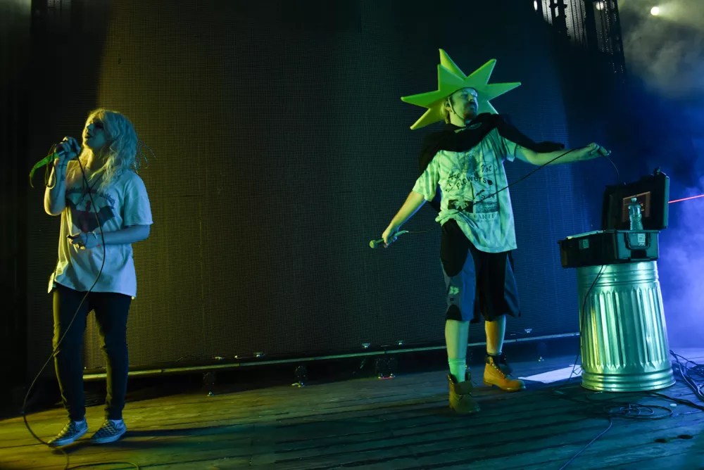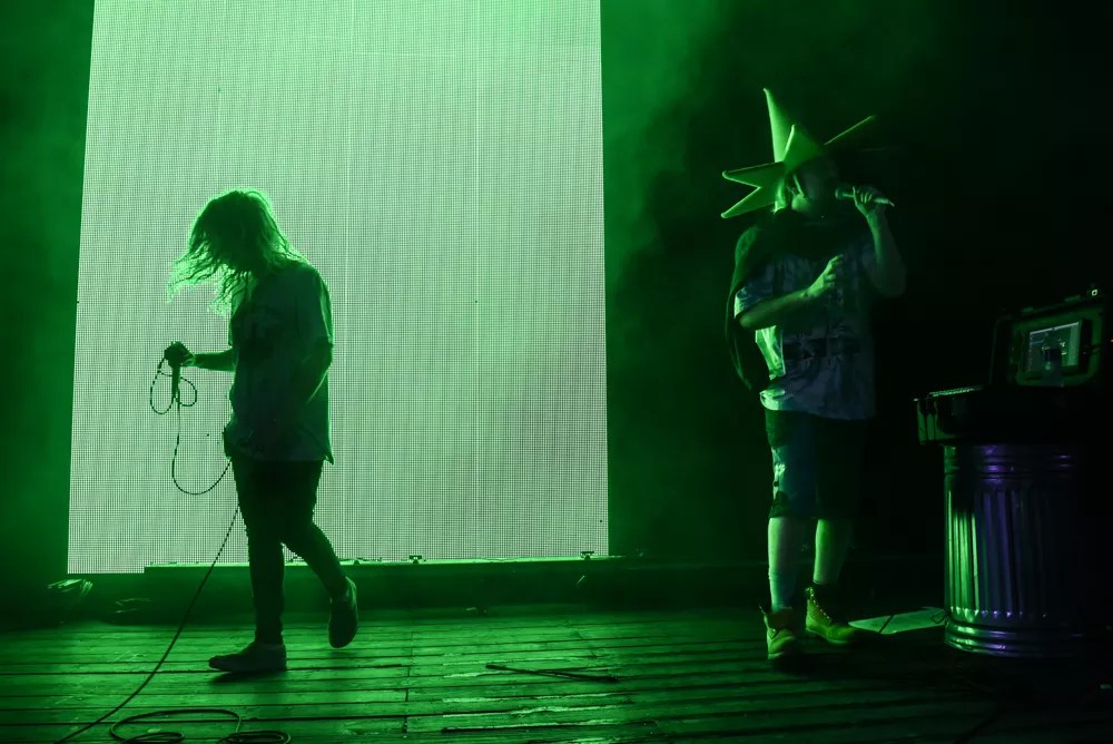 Laure Les and Dylan Brady of 100 gecs brought their signature sonic chaos to Revolution Live on Wednesday, May 10. Currently on the road in support of the critically acclaimed album 10,000 gecs, the duo’s frenetic energy was on full display for the sold-out crowd gathered at the venue. The fans themselves came dressed in all manner of widely inventive fashions that spoke to 100 gecs’ come-as-you-are ethos.