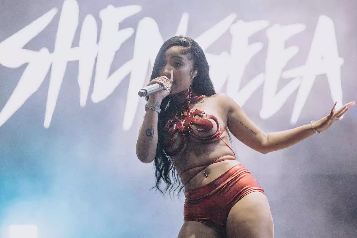 The Kingston native is just as much a pop star as she is a dancehall savant. She smoothed over the gritty hip-hop atmosphere at Rolling Loud with an effervescent Caribbean vibe. She hyped up the crowd with “Blessed,” her 2019 hit single with Tyga and had flags waving carnaval-style to “Can’t Anymore.” It took her no time to get the crowd acclimated to her culture as she turned the Gopuff Stage into a whine competition between fans. Taking off her strappy red heels, she quipped, “This is Shenseea, not Beyoncé,” before plucking fans from the crowd and bringing them onstage. She held the enthusiasm of the crowd hugging the stage even as heavy rain soaked the festival grounds. One fan was overheard saying, “I’m not going anywhere,” as the throngs whined and danced to her pulsating dancehall set. In one of the most electric moments at Rolling Loud, the genre-bending artist had the crowd in the palm of her hand. Shanae Hardy