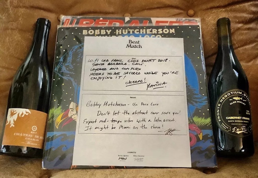 Next on the docket: jazz vibraphonist Bobby Hutcherson’s 1979 record, Un Poco Loco. “Don’t let the abstract cover scare you,” Ramirez’s note reassured. And indeed, while Hutcherson delves into moments of avant-garde exploration, warm tones prevail, yielding an overall easy-listening experience that goes down as smoothly as the “layered and complex” Santa Barbara County cabernet franc with which it was paired.