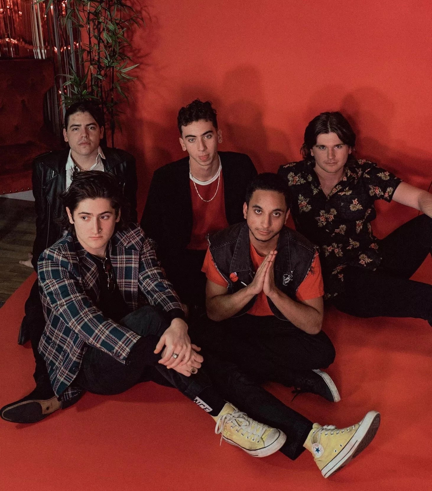 Supergold (counterclockwise from bottom left): singer Alex Alston, drummer Kyle Santiago, guitarist Tanner Collins, bassist Pablo Falcon, and guitarist Christian Ballon