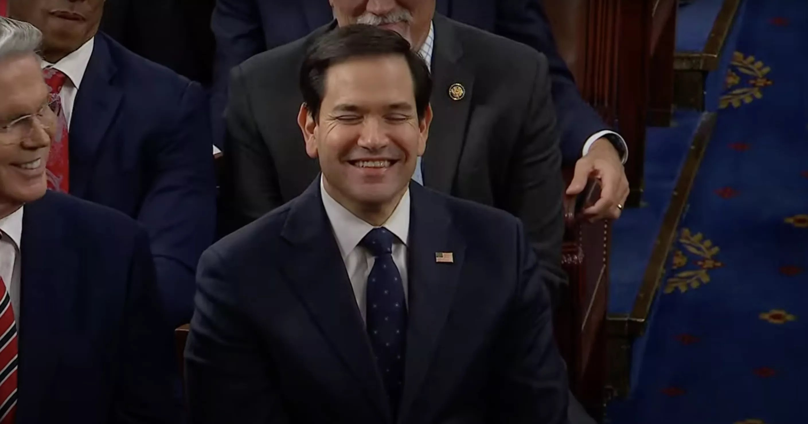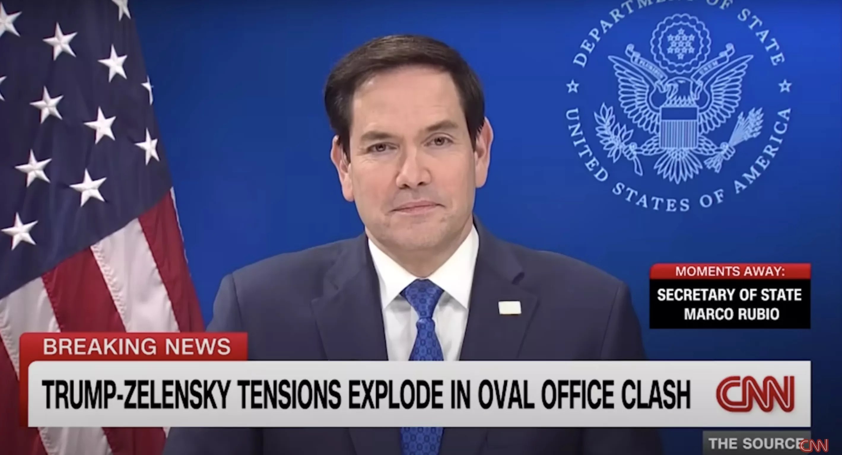 Marco Rubio looks uncomfortable during the Trump-Zelensky showdown at the White House.