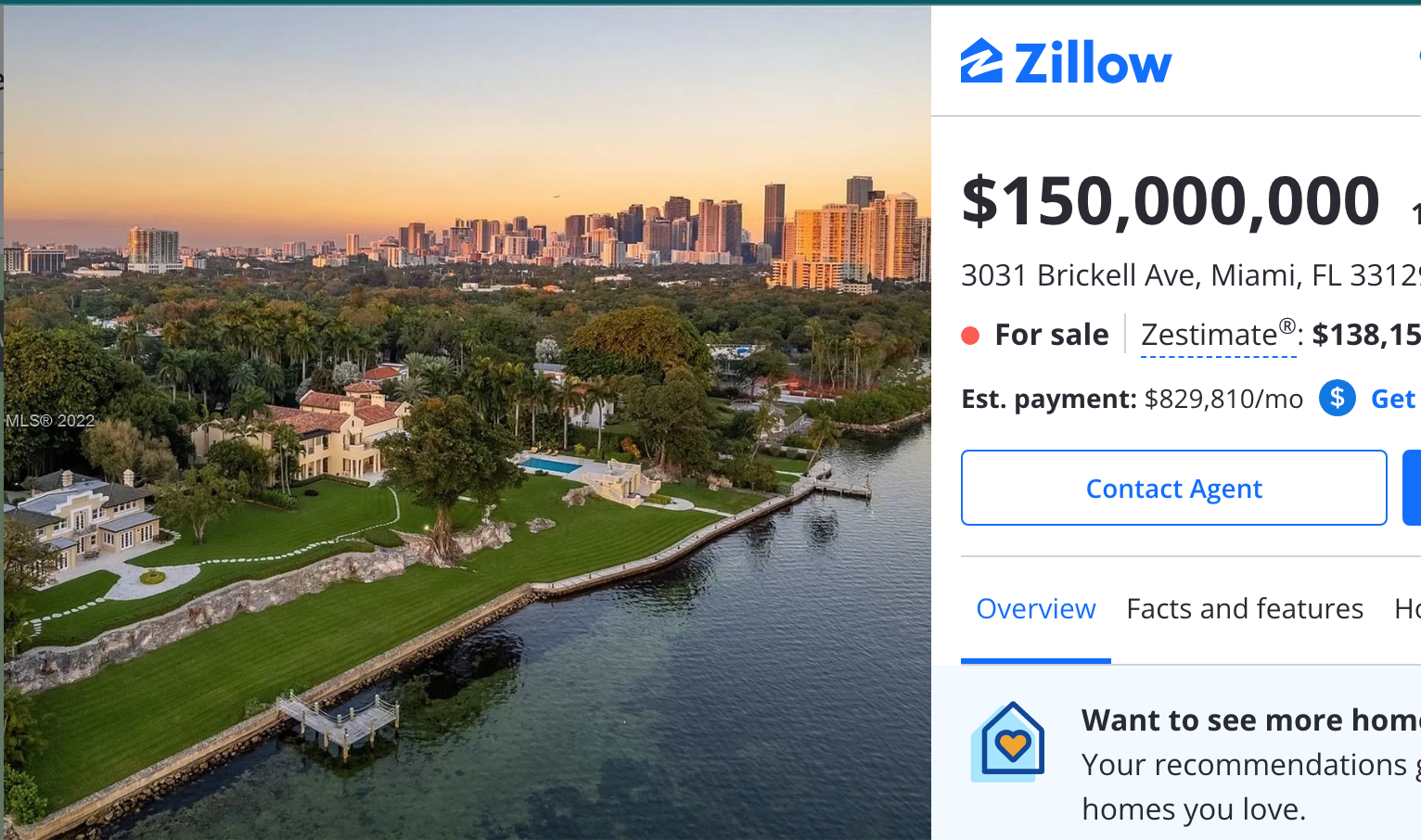 With $150 million, you can own the 637-carat L’Incomparable diamond necklace, spend eight nights aboard the International Space Station, or purchase the most expensive residential property for sale in Miami right now.