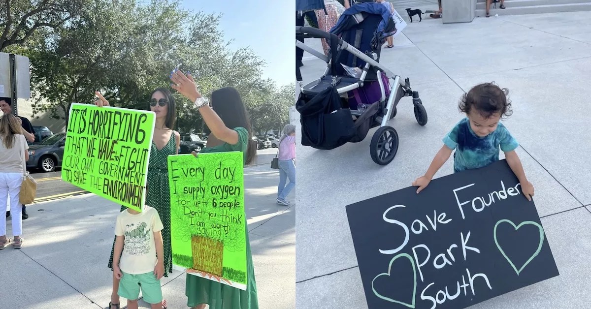 With green megaphones in hand, they chanted “Save our parks!” and “Save our trees!” while hoisting colorful signs that read “No Nature, No Future” and “Stop Destroying Aventura.”