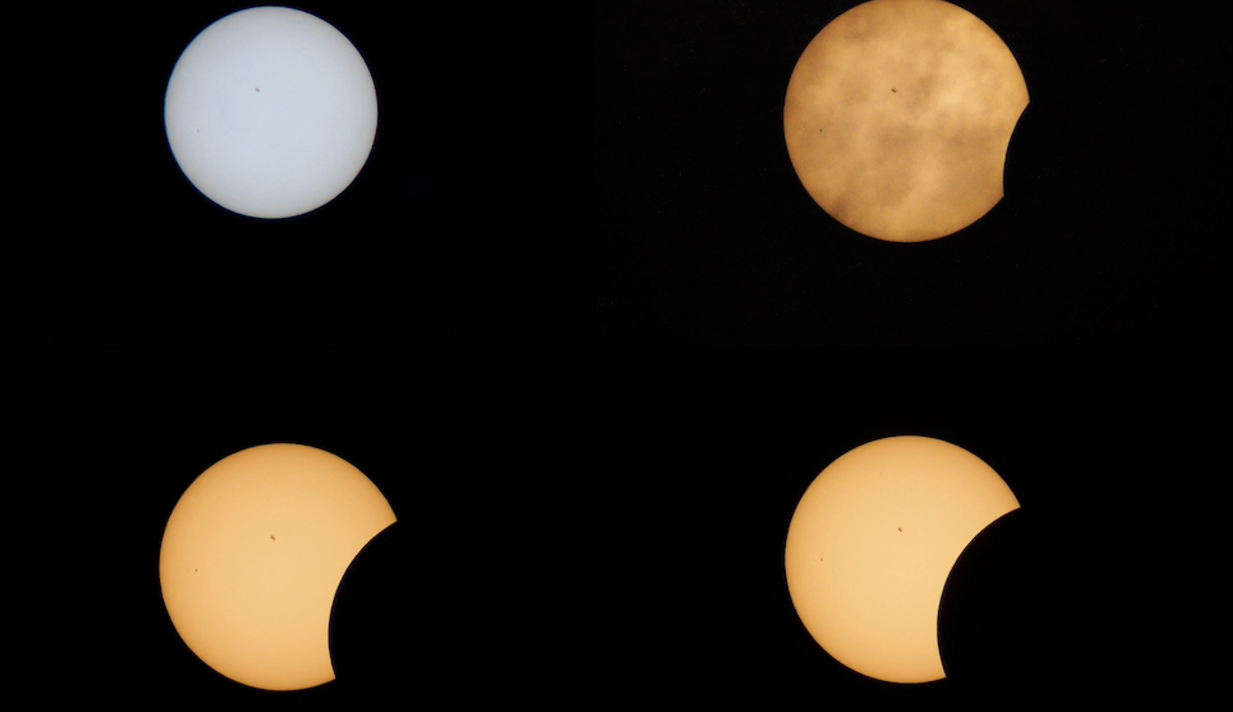 Just past 1 p.m. a clear view of the partial eclipse could be seen from the downtown park, a few minutes before clouds got in the way again. And at 1:41 p..m, the sky went dramatically dark for around 4 minutes while the moon finally blocked the sun from our view here on Earth.