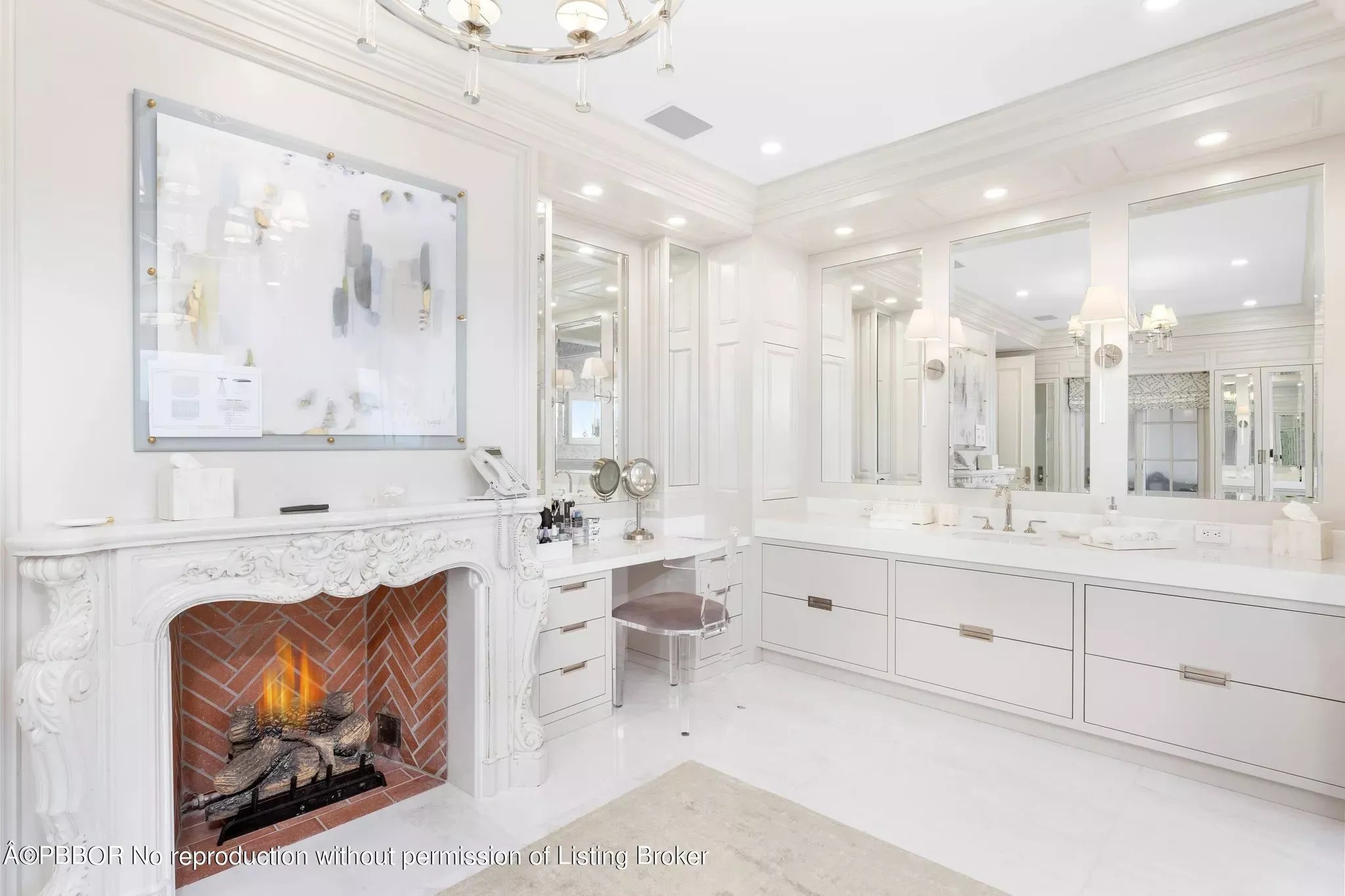 The master bathroom comes with a fireplace.