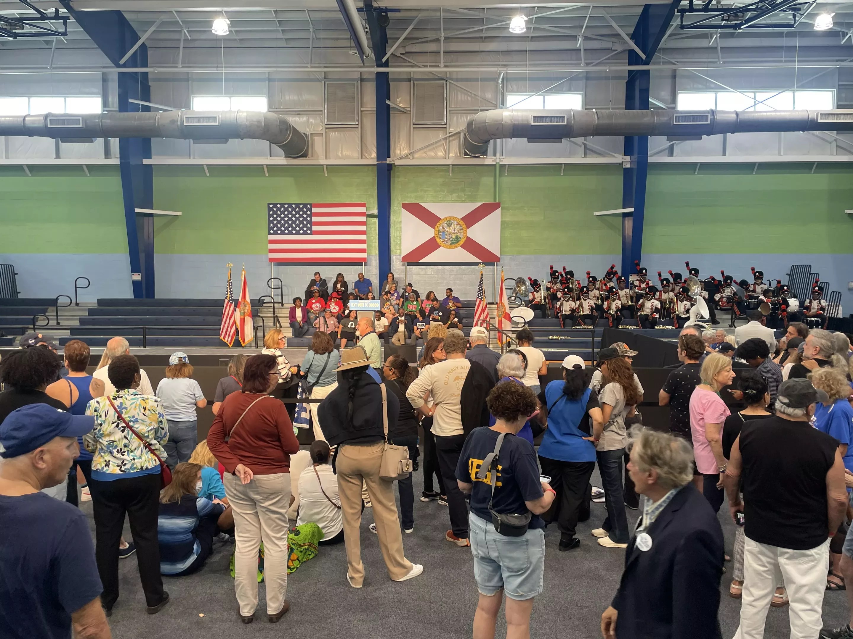 The modest crowd was somewhat dwarfed by the Costco-esque surroundings and, at least early on, by the Boyd Anderson High School Cobras Marching Band from Lauderdale Lakes, 15 miles to the north. Their repertoire varied from country hits to Taylor Swift’s “Cruel Summer” to almost the entirety of Beyoncé’s Renaissance album, with Motown favorites from the likes of Stevie Wonder and the Jackson 5 filling in the gaps.
