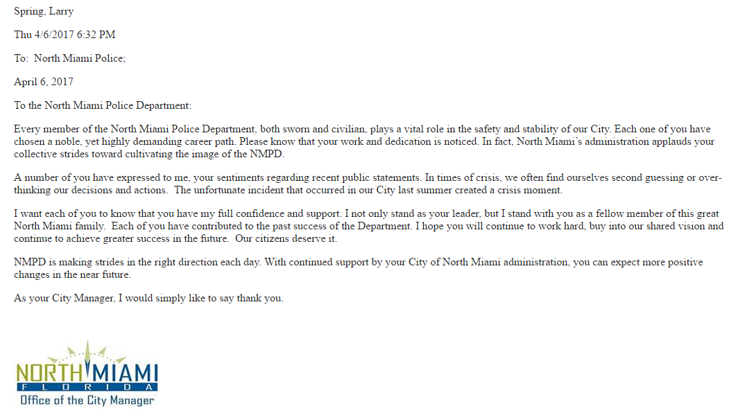After the shooting, North Miami PD suspended both Aledda and Hollant after the city claimed Hollant lied to investigators after the ordeal. But on August 2 — the same day this testimony was taken — the Miami-Dade State Attorney’s Office cleared Hollant of wrongdoing. He has, however, remained on paid “house duty” suspension since then.