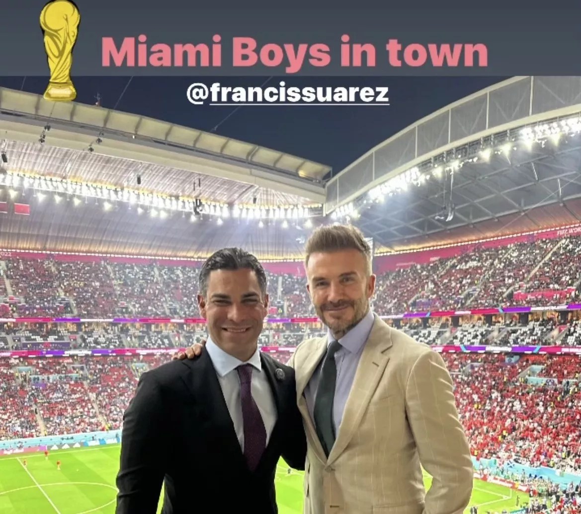 Miami Mayor Francis Suarez was seen chilling with soccer legend David Beckham, co-owner of Major League Soccer team Inter Miami, at the France-Morocco World Cup semifinal match in Qatar on Wednesday.