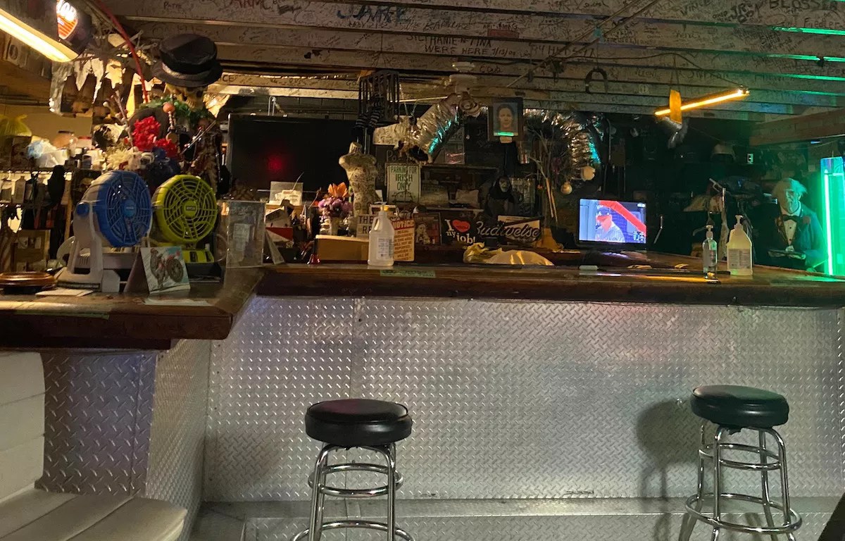 “Around Oktoberfest, there was a Dollar Tree skeleton and the arm would always be missing – it kept falling off and we’d find it in weird places,” says Ted E. Bear, a longtime patron. “It was always the left arm. I’d ask, ‘Why the left arm?’ That’s where they put the lethal injection – into her left arm.”