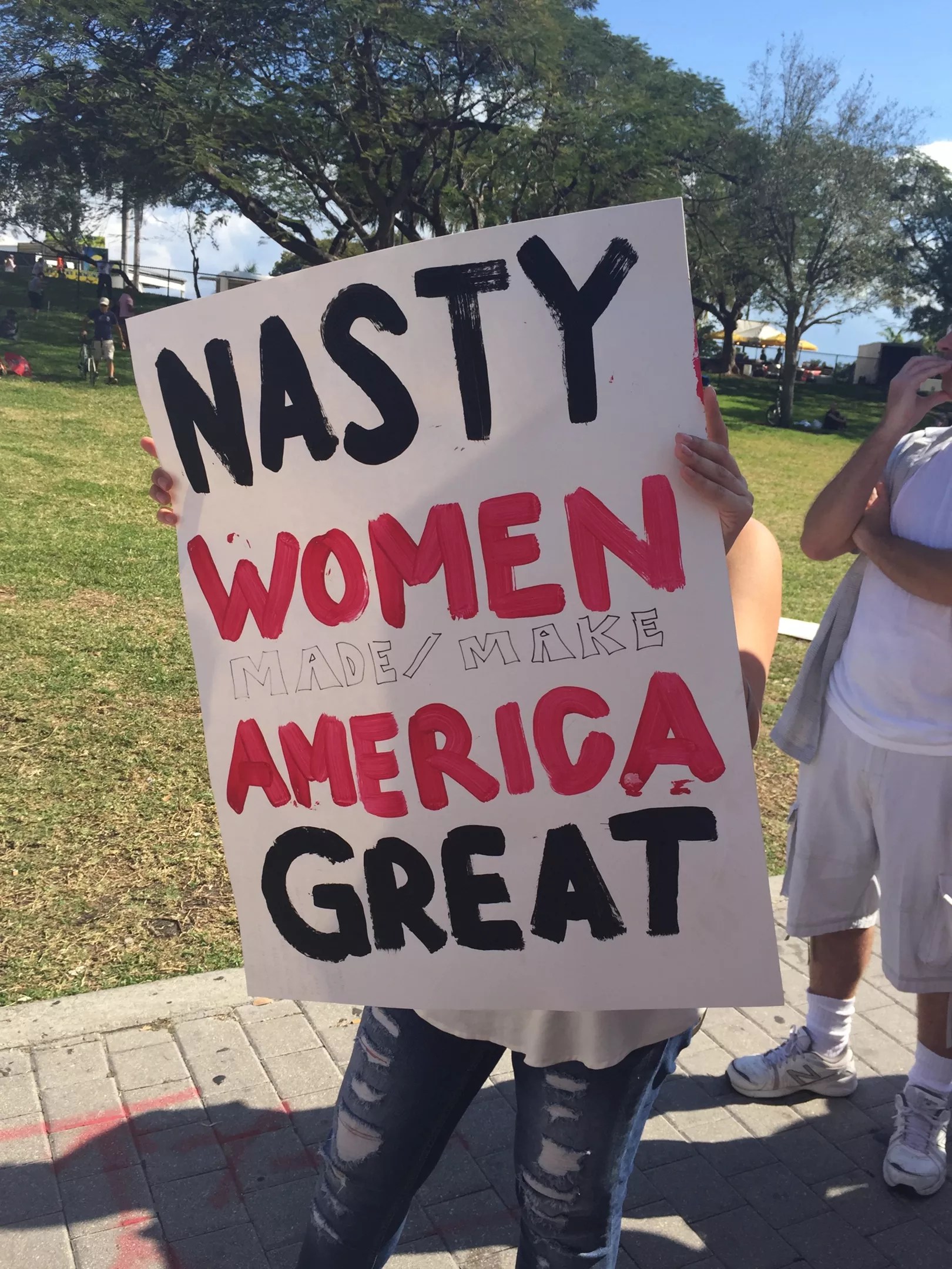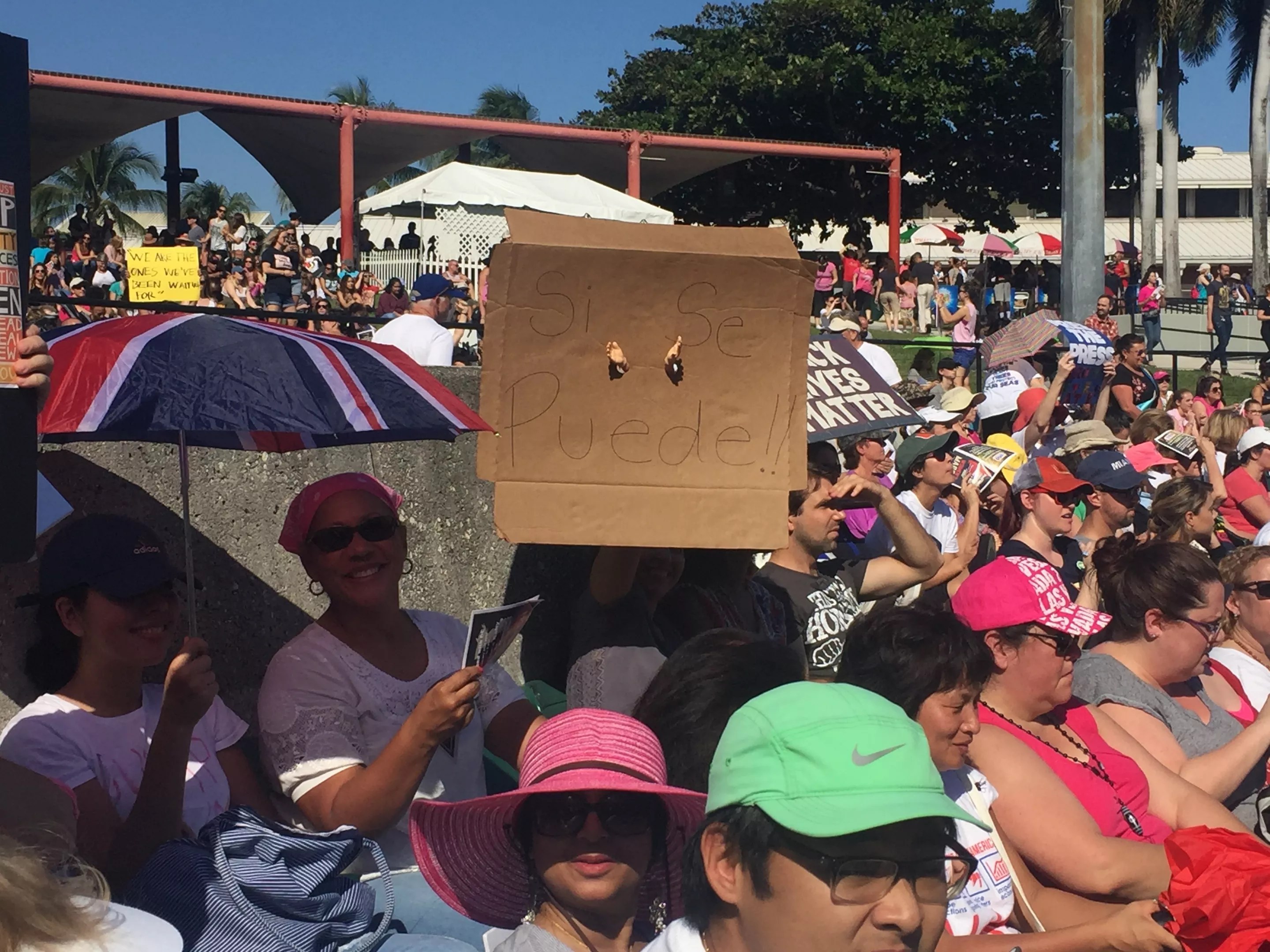 One day after Donald Trump officially became president of the United States, more than 10,000 people flooded downtown Miami in support of women’s rights and civil rights, echoing demonstrations at rallies in cities around the world.