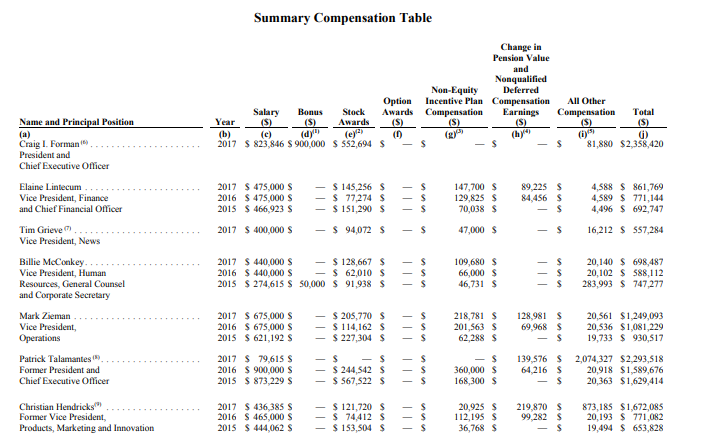 How good? Forman received a $900,000 bonus in 2017, according to the most recent publicly available salary information, which McClatchy submitted to the Securities and Exchange Commission in April 2018. That money came on top of the $823,846 base salary he received and the $552,684 he earned in stock awards. All told, Foreman – a former Wall Street Journal news editor who later became a Silicon Valley corporate executive – received $2.4 million in compensation in 2017.