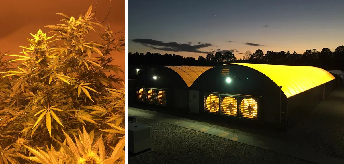 A pudgy man in a white lab coat, protective goggles, and a white hardhat ambles down several long rows of potted marijuana plants. An industrial A/C unit cranks frigid air into the capacious grow room, located inside a 300,000-square-foot warehouse just outside Tallahassee, while an array of high-pressure sodium lights bathes the indoor crop in a sunny, golden hue.