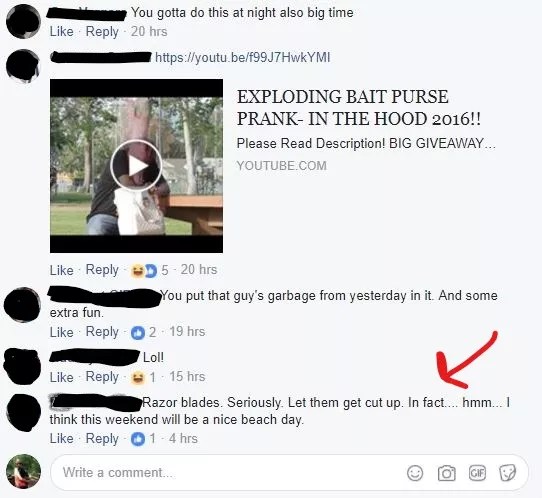 One member suggested taking things further by placing razor blades in bait bags as a means of injuring would-be thieves. New Times reporters, along with other local journalists, were booted from the group after the story was published. But we saved screenshots: