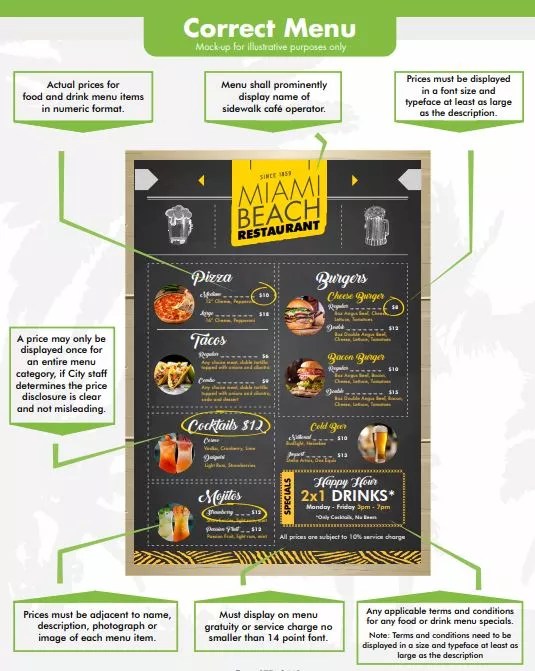 After one too many people paid $120 for an appetizer, Miami Beach has finally stepped in with a dramatic solution – issuing guidelines for menus and requiring city approval for every one of them. Restaurants now must list prices, along with terms and conditions for specials. Service charges have to be spelled out in