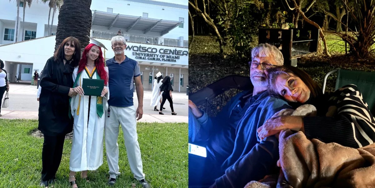 Left: Carla Artese and her family at her high school graduation. Right: Fernando Artese and his wife, Monica Artese.