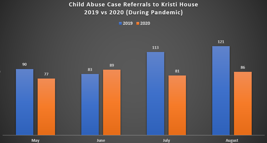 Referrals to Kristi House dropped this summer compared to 2019, particularly in July and August.