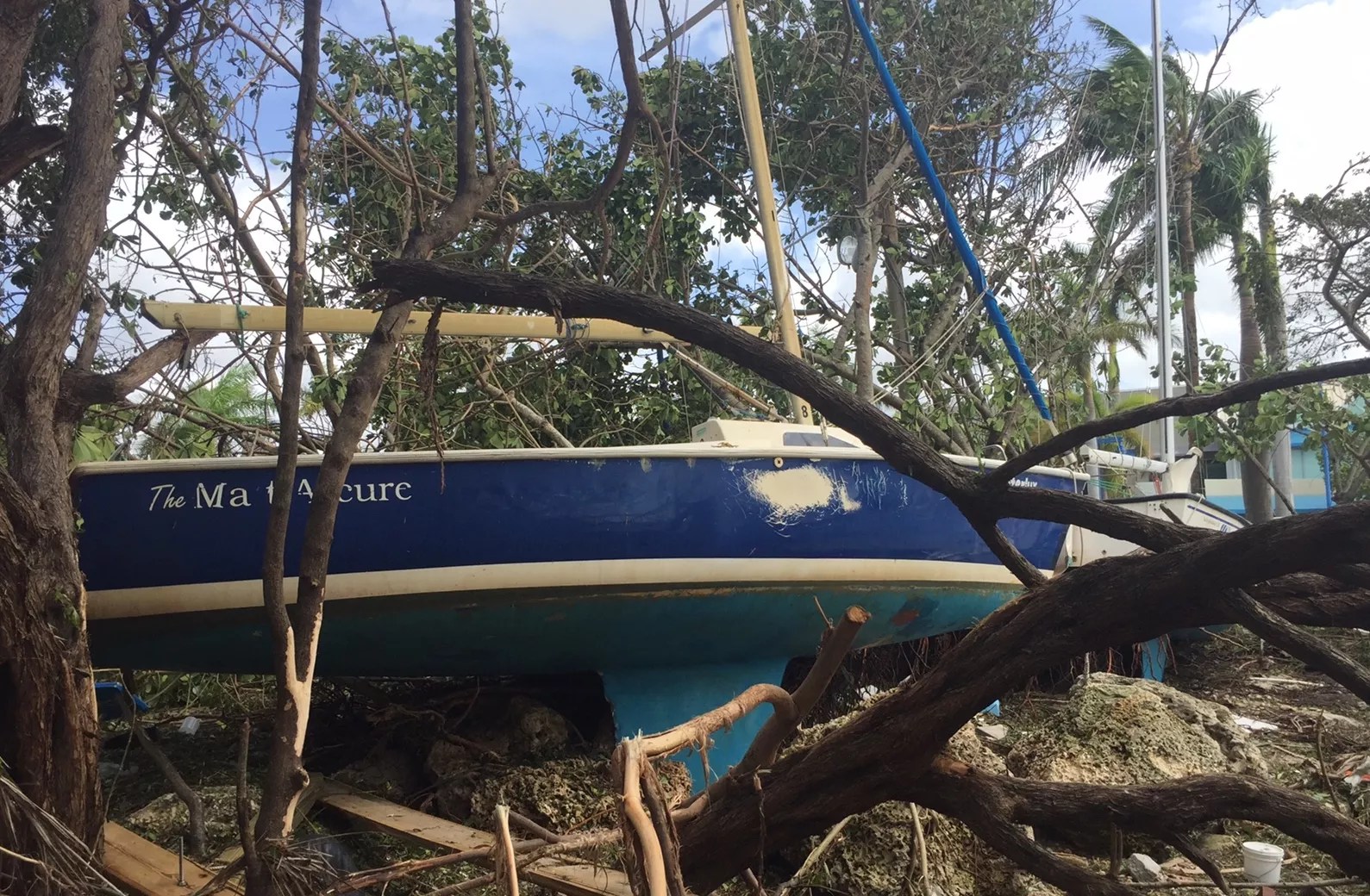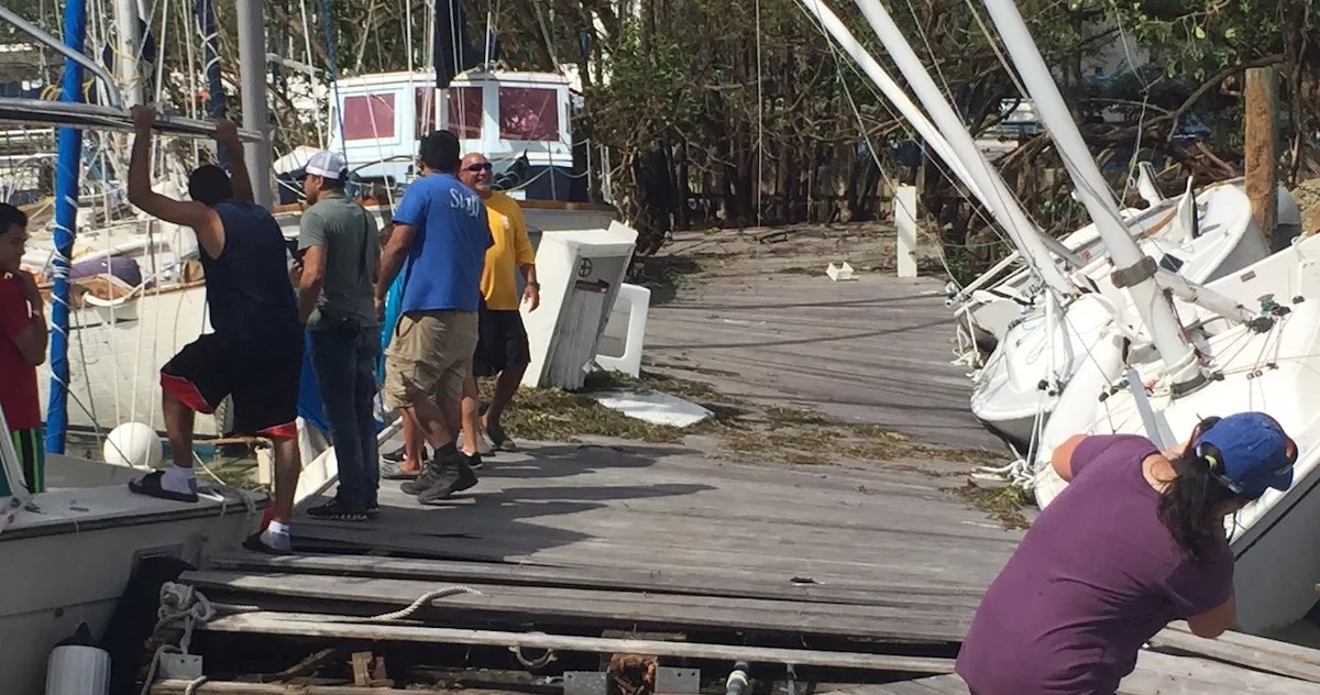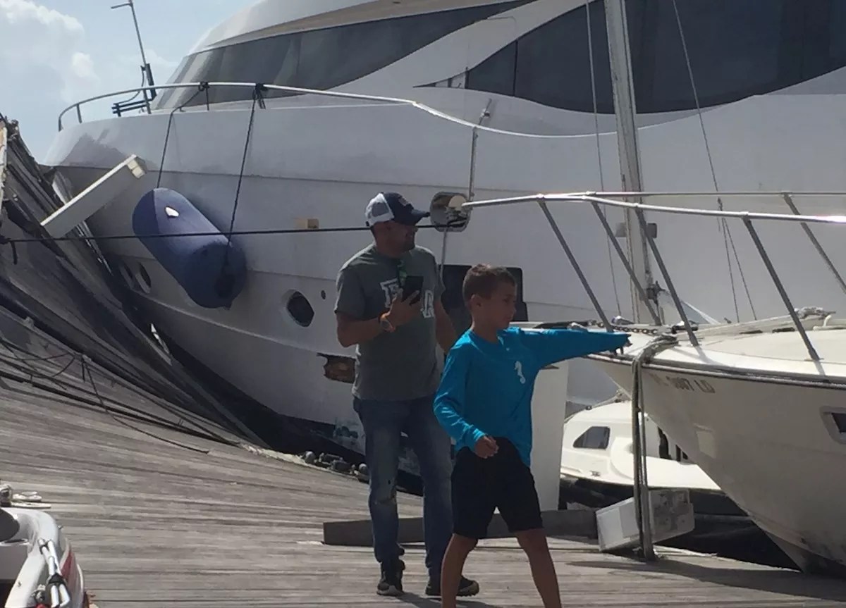 Noon. Dinner Key got hammered by Irma’s storm surge and winds. Boats are toppled onto docks, and many are wrecked together in the harbor.